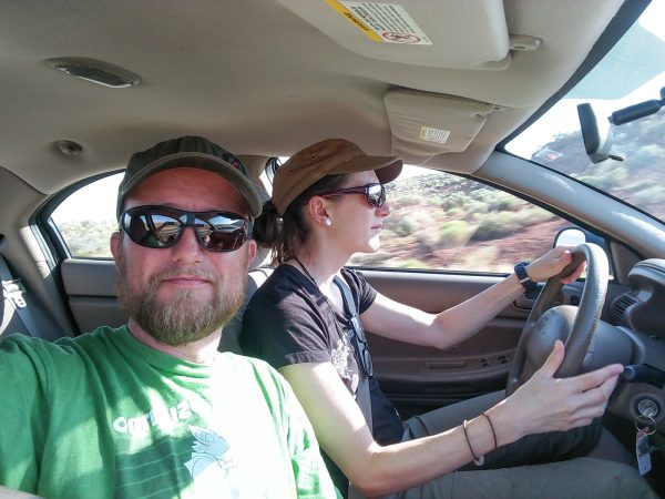 Mehrere Leute bestätigen uns, dass Grand Canyon sicher einen Umweg wert sein wird. „Diese Dimensionen sind unbegreifbar,“ sagen sie. Umwege von ein paar hundert Kilometer kosten am Fahrrad jedoch schnell mal eine Woche. Wir schaffen es aber, ein Mietauto in der Kleinstadt Kanab an der Grenze zu Arizona zu organisieren und können den Fahrradumweg so auf drei Tage reduzieren, mit nur etwa 200 km mehr am Rad und wunderschönem sowie interessantem Nebenstraßen-Erlebnis. Der Umweg lohnt sich. Wir besuchen das North Rim vom Canyon, weil es näher liegt und weniger besucht ist. Und tatsächlich, die Größe und Tiefe sind unbegreifbar. Bis zu 1800 Meter ist der Canyon tief und je weiter man nach unten sieht, desto weiter sieht man in die Vergangenheit der Erde zurück. Schicht für Schicht wird eine neue Geschichte über dieses Gebiet erzählt.