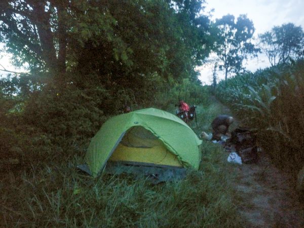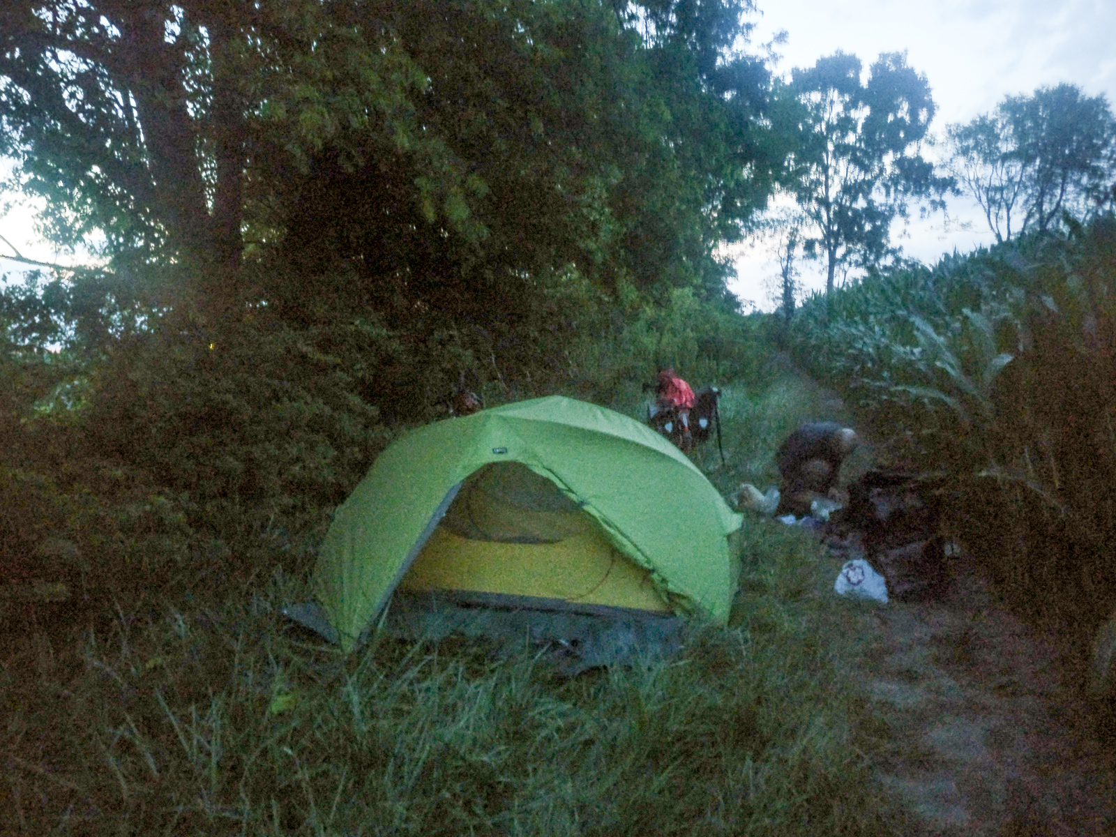 Als weiterer Unterschied zwischen Osten und Westen stellt sich die Schlafplatzsuche heraus. Da es fast kein „public land“ gibt, ist es auch kaum möglich, unser Zelt schnell mal irgendwo aufzustellen. Abgesehen davon, ist so gut wie jede Fläche besiedelt oder bewirtschaftet. Von offiziellen Campingplätzen oder Motels können wir nicht zu häufig profitieren, da sie im mittleren Westen zwei bis drei mal so viel wie im wilden Westen kosten und unser Budget zu sehr belasten würden. Die städtischen Parks, welche in Kansas immer eine sichere Zeltmöglichkeit waren, haben nun oft deklarierte Parkregeln, die Camping ausdrücklich verbieten. Positiv hingegen ist, dass die Angebote auf sozialen Gastgeberplattformen wie Couchsurfing oder Warmshowers im Osten häufiger sind. Somit dürfen wir uns nun öfters über ein festes Dach, eine warme Dusche, sowie nette Gespräche mit Gastgebern freuen. Zwischendurch stellen wir das Zelt mal versteckter, mal sichtbarer auf – abhängig davon, wie die landschaftlichen Begebenheiten sind und wie die Einheimischen reagieren.