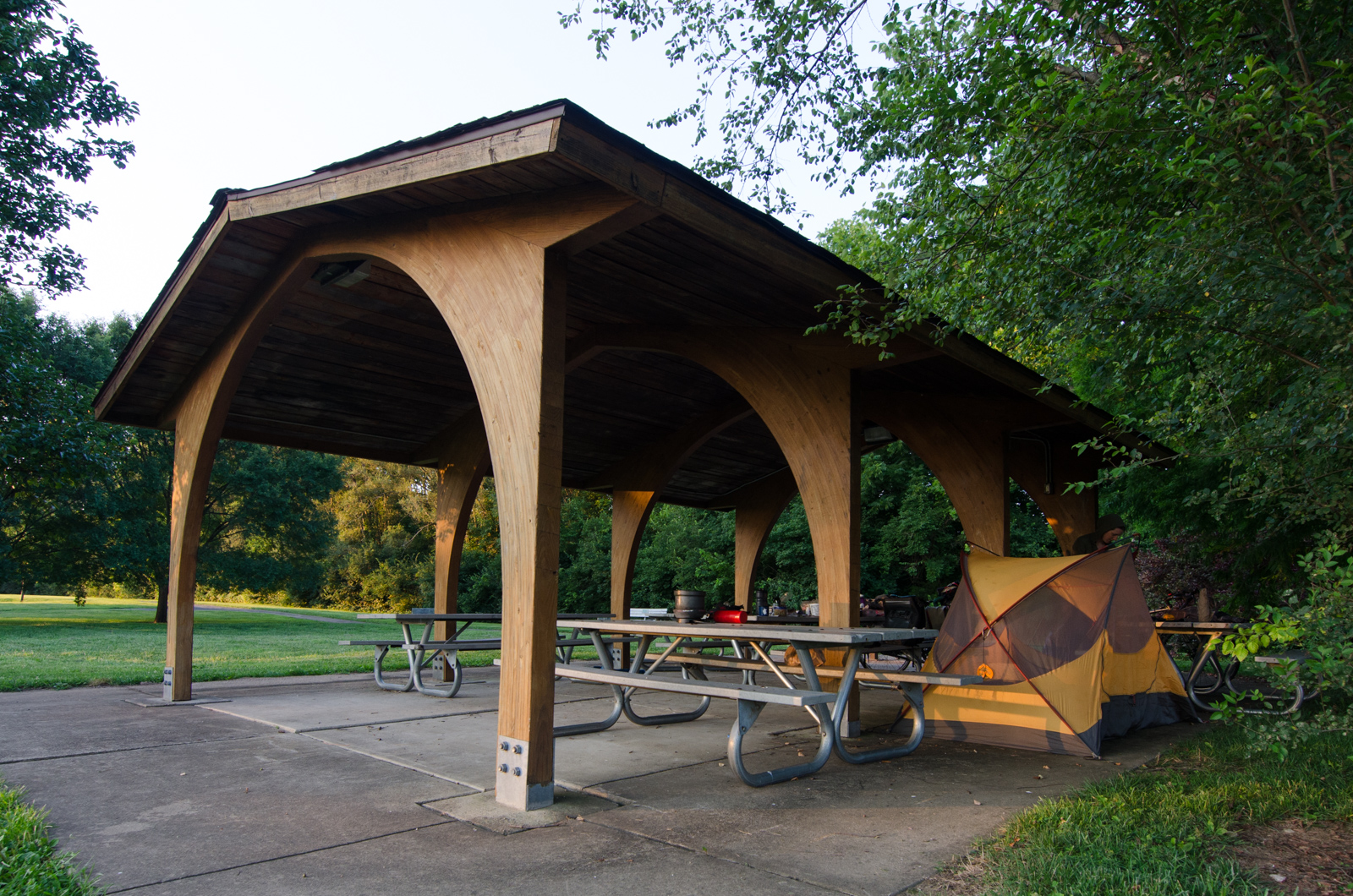 Der wohl unvergesslichste Schlafplatz ist jener in Ohio – kurz nach Cincinnati. Wir kommen bei einem Park mit kleinen Pavillons und Tischen vorbei und sehen keine Parkregeln oder Öffnungszeiten. Da das dazugehörige Städtchen etwas entfernt liegt, und wir kurz zuvor in einem ähnlichen Park von den Einheimischen mit einem „Camping? Kein Problem!“ begrüßt wurden, suchen wir nicht extra die lokale Polizeistation auf. Kathi ist etwas erkältet und daher früher im Bett. Gegen 11 Uhr nachts dann das böse Erwachen: Blendendes Taschenlampenlicht im Gesicht und eine kräftige Männerstimme, die sagt: