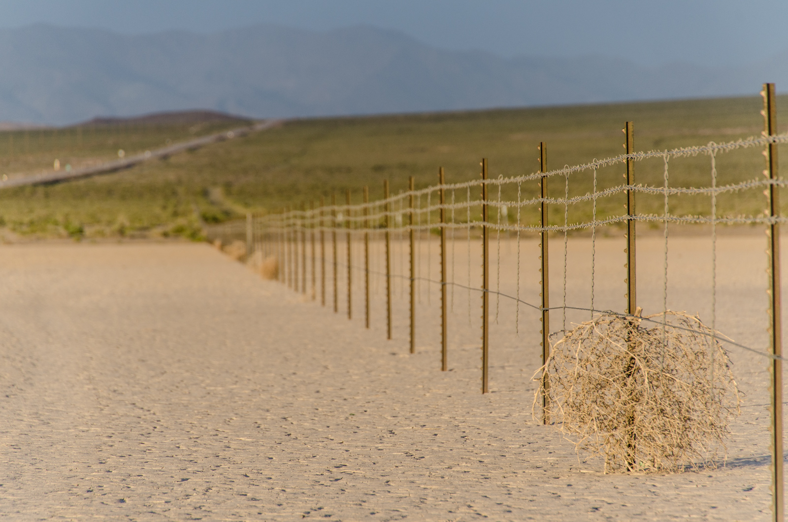 Als Land mit sehr wenig privatem Grundbesitz wird Nevada außerdem vom Militär als Spielwiese genutzt. Als wir an einer auf unserer Karte rot schaffierten Zone vorbeikommen, haben wir schon den Verdacht, dass es sich um ein militärisches Sperrgebiet handeln könnte. Die Zone erstreckt sich über mehr als 10 km durch ein ganzes Becken. Am Horizont ist der nächste Berg. Da es spät ist, schlagen wir unser Zelt auf der anderen, nicht gesperrten Seite der Straße, in gewisser Distanz zu dieser Zone, auf.