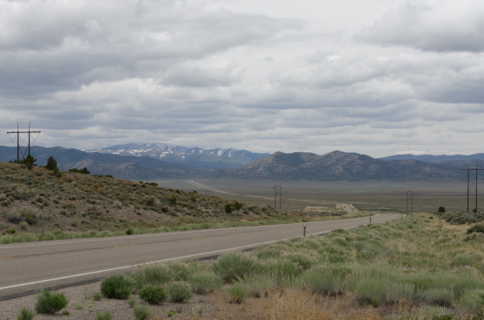 9. Mai 2017: Mit dem Überqueren der Sierra Nevada tauchen wir in das Große Becken – the Great Basin – ein. Diese trockene Großlandschaft definiert sich durch ihre Abgeschiedenheit vom Meer mit der Sierra Nevada im Westen und den Rocky Mountains im Osten. Somit versickert das Wasser im Wüstensand oder es sammelt sich in Seen. Wir durchqueren das große Becken über eine ca. 850 km lange Route in Nevada und den westlichen Teil von Utah bis Cedar City. Obwohl man sich ein Becken flach vorstellen könnte, bekommen wir einige Höhenmeter in den Beinen zu spüren. Beim Great Basin handelt es sich nämlich nicht um ein einziges großes Becken, sondern es besteht aus hunderten Teilbecken, die durch nord-süd-verlaufende „Gebirgsinseln“ getrennt sind. Diese machen Nevada sogar zum gebirgigsten Staat des Landes und bereiten uns immer wieder stundenlange Anstiege und weitläufige, schnelle Abfahrten.