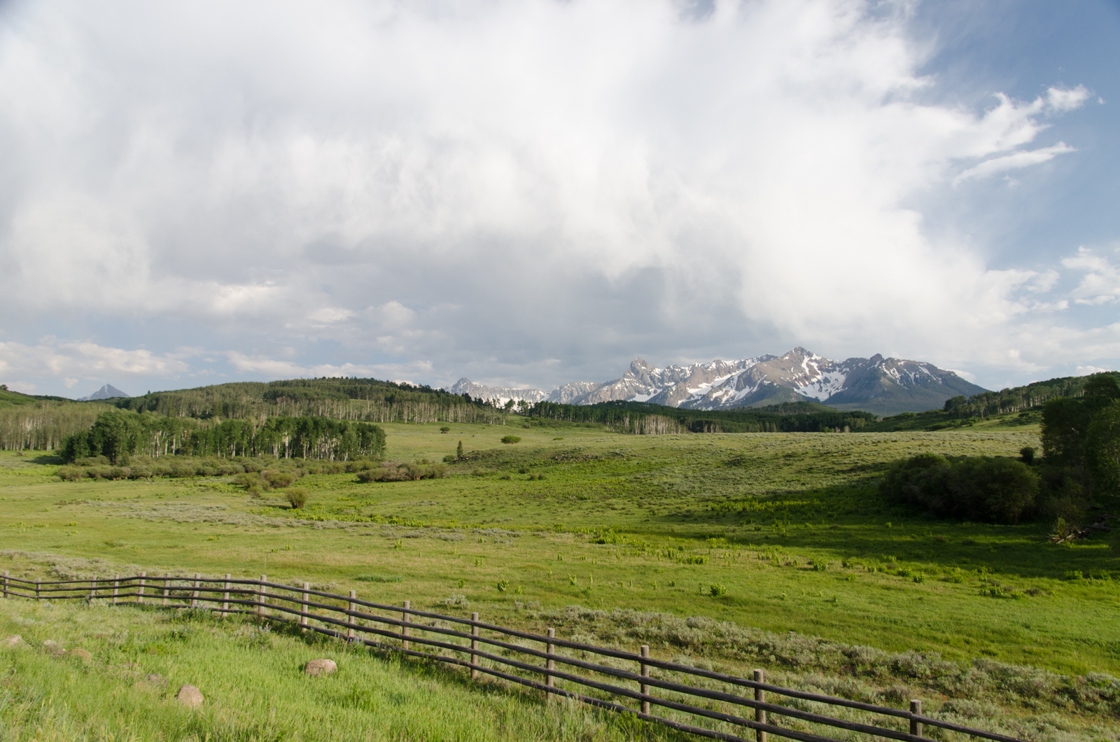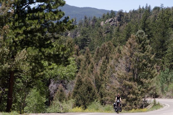 18. Juni 2017: Vor dem Anstieg auf die Rockies lassen wir unsere Fahrräder noch durchchecken und schmieren. Damit rollt es sich gleich viel leichter und leiser. Die Straße zum Lizard Head Pass geht entlang des Dolores River, der nach der Schneeschmelze noch immer viel Wasser führt. Der Anstieg ist nicht zu steil. Die Temperaturen werden langsam kühler. Rund um uns ist es saftig grün, mit manchmal sichtbaren grauen oder roten Felsen. Immer öfters kommt uns der Gedanke: „Wie zuhause in den Alpen oder Voralpen“. Die Rockies sind weitläufiger und scheinen weniger zusammen gedrückt als die Alpen, und sie haben zwischendurch mehr rötliche Farben, was wir von den heimischen Bergen so weniger kennen. Aber sonst… Wie daheim in Österreich und der Schweiz.