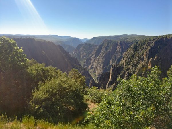 Der nächste Abstecher mit eine paar hundert Extra-Höhenmetern führt uns zum letzten Canyon unserer Reise, dem Black Canyon of Gunnison Nationalpark. Die enge Schlucht, wo nur wenig Sonnenlicht bis zum Grund fällt, beeindruckt uns sehr. Wir haben Glück: An diesem Abend findet eine Astronomie-Vorstellung statt und wir sehen eine Präsentation über den aktuellen Stand und die Auswirkungen der Lichtverschmutzung. Künstliche Lichtquellen in der Nacht, vor allem jene, die sinnlos in Richtung Himmel leuchten, haben störende Einflüsse auf die Umwelt, besonders für die Tiere. Insekten und Vögel sind in ihrer Navigation und Orientierung irritiert. Meeresschildkrötenbabys können den Weg ins Meer nicht finden, wenn der Strand zu hell beleuchtet ist. Störungen des menschlichen Hormonhaushalts wurden ebenfalls bereits nachgewiesen und werden aktuell noch weiter erforscht. Und dann beeinflusst künstliches Licht natürlich auch astronomische Beobachtungen. Im Black Canyon Nationalpark gibt es keine Lichtverschmutzung und es ist daher ein perfekter Ort um den Sternenhimmel zu bestaunen. Freiwillige Hobby-Astronomen sind an dem Abend im Nationalpark um ihre Faszination für die Sterne mit uns zu teilen. Die riesige Pracht der Milchstraße ist hier mit freiem Auge sehr gut erkennbar. Jedoch helfen uns verschiedene Teleskope, noch weiter in die Ferne zu blicken. Wir sehen den strahlenden Jupiter mit seinen Monden, die Ringe des Saturns, Doppelsterne – d.h. zwei Sterne die umeinander kreisen – und auch Doppel-Doppelsterne. Mit einem Spiegelteleskop von der Größe einer dicken Kanone tauchen wir sogar in einen Sternen-Cluster ein, der Millionen Lichtjahre entfernt liegt. Wir fühlen uns ganz klein, und versuchen es zu begreifen, dass wir hier nur in die Vergangenheit zurück blicken und manche Sterne möglicherweise gar nicht mehr existieren. Spät nachts legen wir uns in unser nicht 5-Sterne-, sondern Millionen-Sterne-Unterkunft, um am nächsten Tag wieder fit für die nächsten Kilometer zu sein.