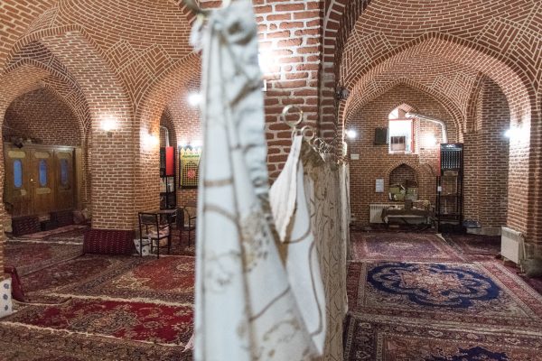 Schiitische Moscheen sind bewusst aus „vergänglichem“ Ziegel und nicht aus „ewigem“ Stein gebaut, weil die Ewigkeit dem Allmächtigen vorbehalten sein soll. Wie üblich trennt ein Vorhang die Bereiche für Männer und Frauen.