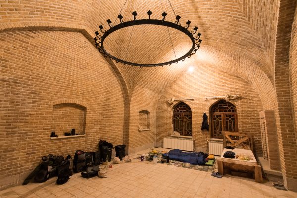 Wir erfahren, dass die Karavanserei gerade in ein Luxushotel umgebaut wird. Typisch Iran: Der Bauleiter des fast fertigen Hotels lädt uns ein, die Nacht zu bleiben. Ein verlockendes Angebot…