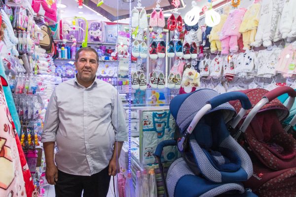 Dieser lustige Herr hat nicht nur Babykleidung, sondern auch Babyspeck und Babyface. Er bittet uns ein Foto von ihm „mitzunehmen“. Seine Basar-Nachbarn sticheln ihn freundschaftlich und zeigen mit dem Finger auf ihn, während sie sagen: „Fat!“. Er nimmt’s gelassen.