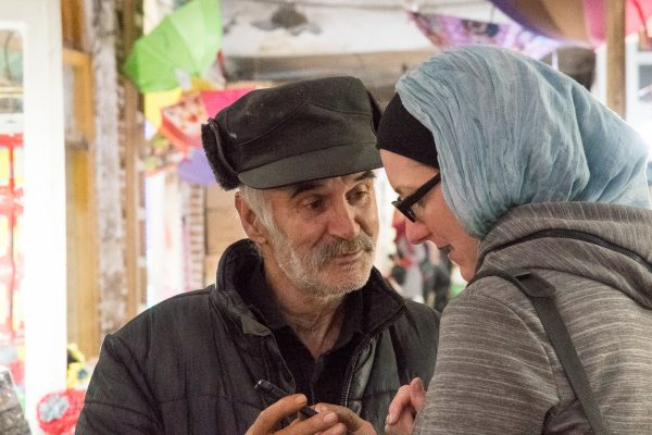 Natürlich gibt es auch den (Perser-)Teppich-Basar und jede Menge „Touristenfänger“, die mit guten Sprachkenntnissen versuchen, Ausländer dorthin „auf einen Tee einzuladen“. Wir lassen uns darauf ein, erklären aber gleich am Anfang, dass wir Teppiche am Fahrrad gar nicht transportieren können. Macht nix – vielleicht wollen wir ja später mal etwas per Post bestellen… auf geht’s, auf einen Tee! 🙂