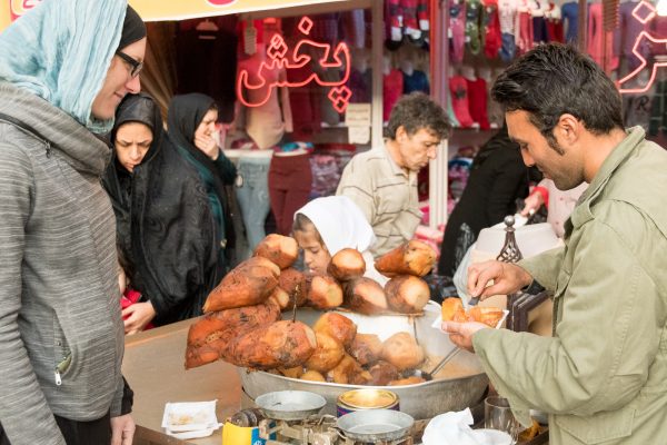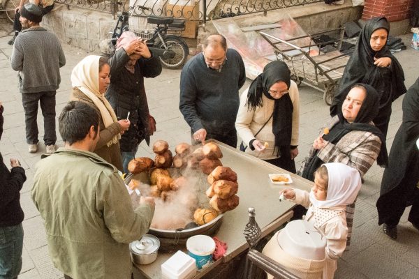…Und wo gekocht wird, dort wird auch gegessen – zum Beispiel gekochte Zuckerrüben. Solche einfachen Snacks sind sicher nicht schlecht, trotzdem ist die Situation irgendwie bedrückend: Der intellektuelle Horizont der Menschen, die sich um den brodelnden Topf scharen, reicht oft weit in die Welt hinaus und in die Vergangenheit zurück. Sie wissen wie Wohlstand und Freiheit aussehen, und dass der Iran früher mehr davon hatte.