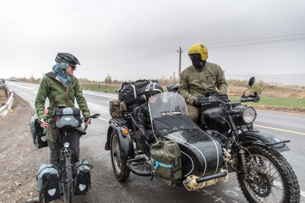 Wiedersehen mit Oli und Corinne – zwei Schweizern, die wir zuvor in Täbris kennen gelernt haben. Sie fahren auf einer Ural mit Beiwagen durch die Welt und sind dabei auch nicht wirklich schneller als wir. (http://theslowriders.ch/)
