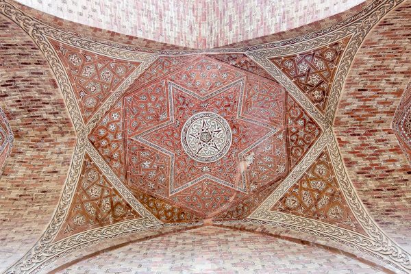 Die Gewölbe des außen liegenden Rundgangs sind nur ca. 2,5 m breit, die Keramik-Verzierungen sind aber so fein, dass trotzdem Abertausende verschachtelte Muster darin Platz finden.