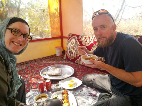 An Tagen ohne Sightseeing geht uns am frühen Nachmittag normalerweise der Brennstoff zum Radfahren aus. Eine Suppe, ein gegrillter Safran-Hühnerspieß mit Reis und dazu Cola ist im Iran unser Standard-Menü um für die zweite Tageshälfte wieder fit zu werden.