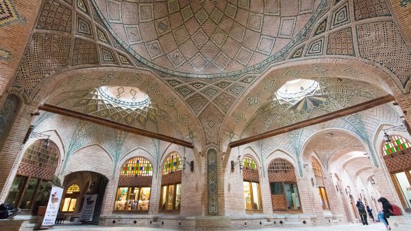 „Überdachung“ ist jedoch nur ein vereinfachender Hilfsausdruck. Unter wunderschön gemauerten Kuppeln und Gewölben verbirgt sich ein mehrstöckiges Labyrinth, in dem alles Erdenkbare gehandelt wird.