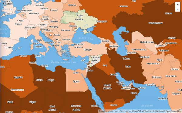 Die Verkehsrisiko-Einschätzung eines Sicherheitsdienstleisters lässt vermuten: Als Radfahrer ist im Iran Obacht geboten! Vor allem, weil das Land (im Gegensatz zu vielen anderen dunkelbraun gekennzeichneten Staaten) relativ hoch entwickelt ist, und somit auf den Straßen dichter Verkehr herrscht.