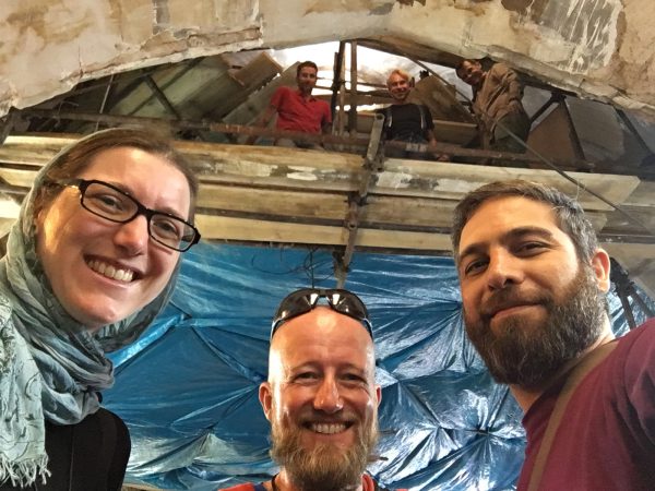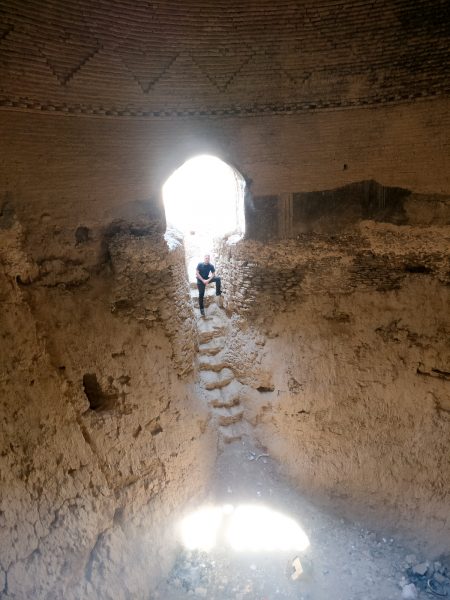 Der Kontakt zu Shahram wurde uns spontan in einem Club in Toronto vermittelt und stellt sich als Jackpot heraus: Der fröhliche Filmregisseur gibt sein Bestes als Stadtführer. Am Beginn der gemeinsamen 3-tägigen(!) Teheran-Tour bringt uns Shahram in den Bazar, wo wir zufällig Bekanntschaft mit einem Team Deutscher Restaurateure machen, die gerade an einem Gewölbe arbeiten (oben im Bild).