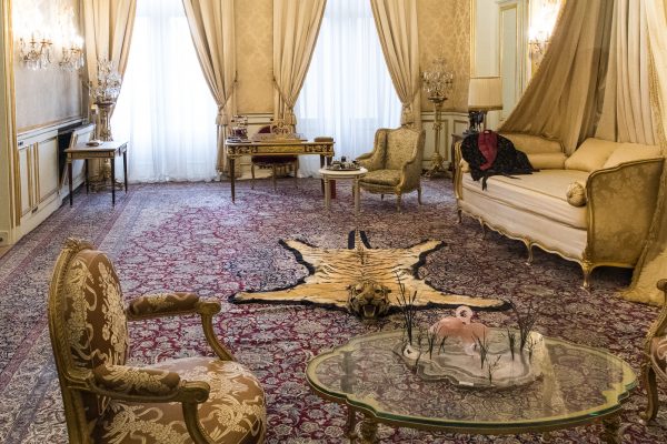 Es gibt dann auch noch neuere Paläste in Teheran, die bis zur islamischen Revolution als Regierungssitz genutzt wurden und dann zu Museen erklärt wurden – hier der weiße Palast in der Saadabad-Palastanlage. Äußerlich moderne Architektur, innerlich der gleiche Pomp wie schon vor hunderten Jahren… nur liegt hier manchmal noch eine Katzenhaut auf den riesigen Teppichen, die Fensterscheiben sind aus Panzerglas und es gibt elektrische Aufzüge Made in Germany.
