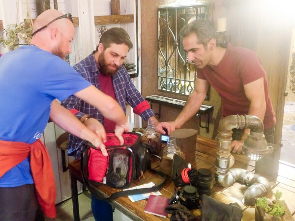 Letzter Programmpunkt: Einladung zum Theaterbesuch. Das ist nicht ganz einfach, wenn man nur ausgebleichte T-Shirts und löchrige Outdoor-Klamotten dabei hat. Also geben sich Asiyeh und Shahram alle Mühe, um uns einigermaßen gesellschaftstauglich zu herzurichten.