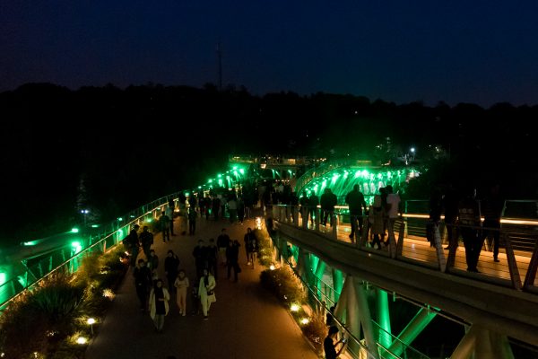 Die moderne Tabiat Fußgängerbrücke führt über eine Autobahn und verbindet zwei Parks. Sie lädt zum Verweilen ein: Auf drei Ebenen ist nicht nur Platz für Gehwege, sondern auch für Aussichtsplattformen, Sitzbänke, Grünflächen und Cafés. Wirkliche Chill-Out-Stimmung herrscht trotzdem nicht: Es wimmelt nur so von „unauffälligen Aufpassern“ in Zivil, die sofort einschreiten, wenn sich jemand mehr Freiheiten als erlaubt nimmt. Und erlaubt ist nur wenig.