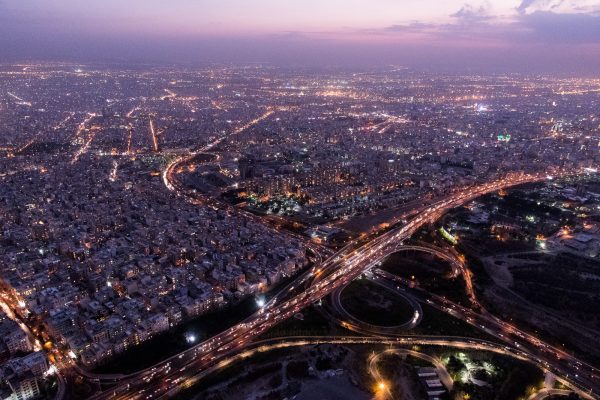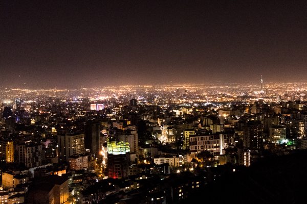 Wir fahren rauf, verpassen den Sonnenuntergang zwar knapp, sehen aber Teheran in der Abenddämmerung von oben.
