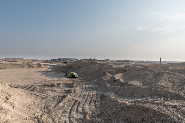 Schluss mit Luxus, Kultur und Sightseeing: Die nächste Nacht wird im Zelt auf einer Straßenbaustelle verbracht, und gekocht wird am Benzinkocher. Zur Abwechslung ist das auch wieder mal ganz gut.