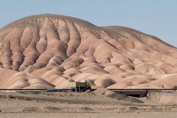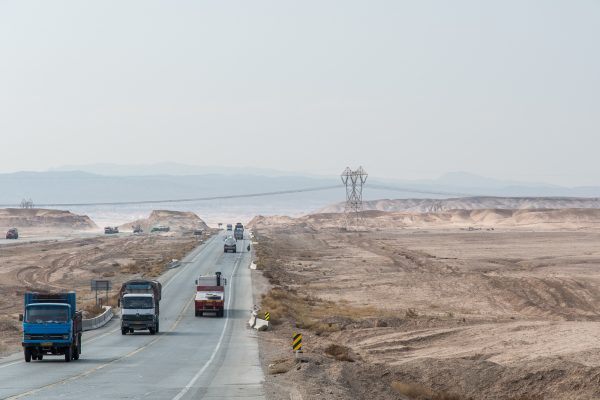 Gemeinsam mit unzähligen Lastwagen rollen wir durch die Wüste Richtung Isfahan.