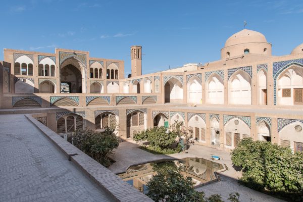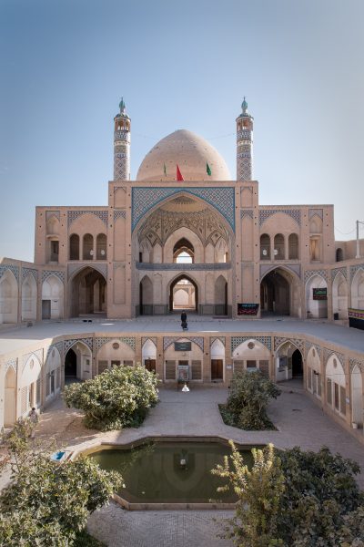 Tritt man durch die straßenseitigen Tore in die dahinter liegenden Anlagen, so eröffnen sich oft ganz neue Welten. Hier die Agha Bozorg Moschee aus dem 18. JH.