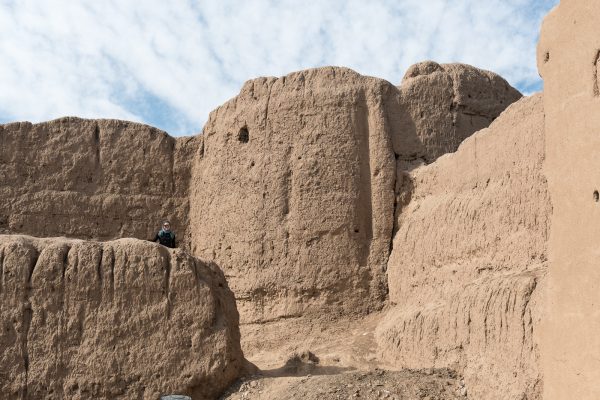 Die mehrere Meter dicken Lehmmauern der Festung aus dem 11. JH im Zentrum von Kaschan verwittern seit Jahrhunderten vor sich hin. Das abgebröckelte Material häuft sich unter der Mauer.