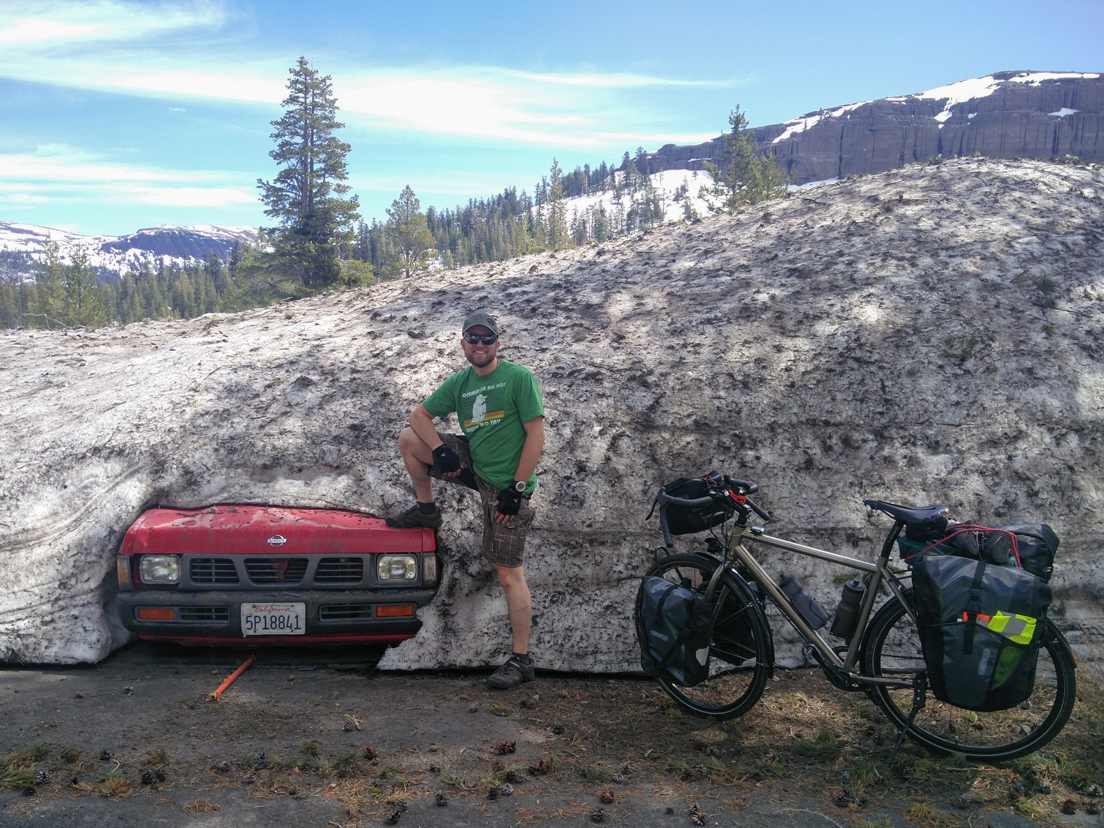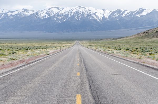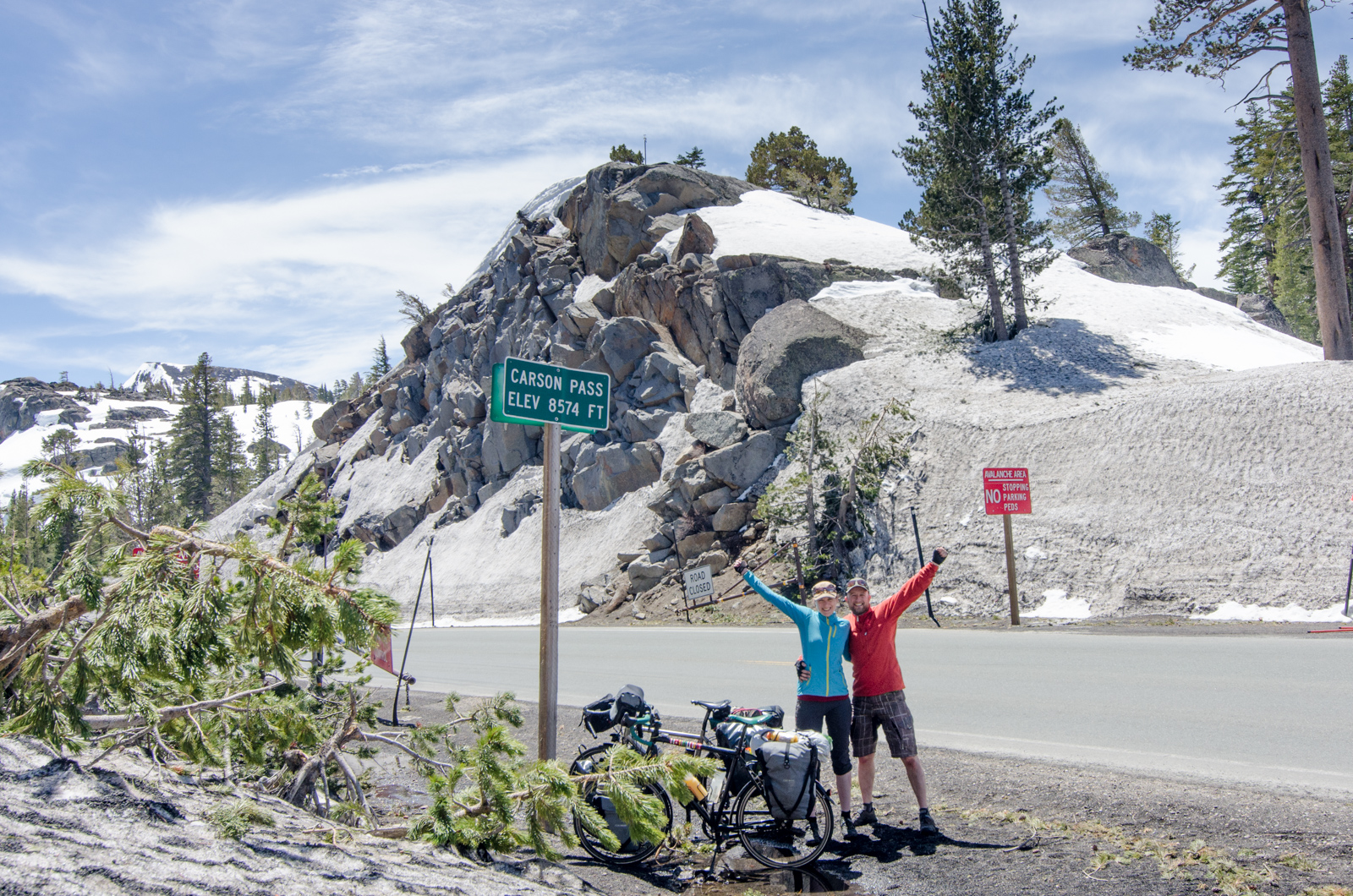 9. Mai 2017: Wir überqueren den Carson Pass in der Sierra Nevada, nachdem wir die knapp 2000 Höhenmeter vom Vortag noch in den Beinen spüren. Der Pass ist befahrbar, da die Lawinengefahr nun vorbei ist, links und rechts jedoch türmen sich die Schneemassen. Wir sind auf 8574 Fuß aka 2613 Metern. Kalifornien und Nevada hatten einen außergewöhnlichen Winter mit der angeblich zweithöchsten Schneemenge seit Beginn der Aufzeichnungen 1879. Wir hätten nicht gedacht, dass wir bereits jetzt unsere Winterkleidung benötigen und sind sehr froh, Daunenjacken, Mützen und warme Handschuhe eingepackt zu haben. Grundsätzlich freuen sich hier alle über die großen Schneemengen, da Kalifornien und auch Nevada die letzten vier Jahre Dürre erleiden mussten. Dieses Jahr sieht es somit besser aus. Wir sind auch froh, dass uns vorerst mal nicht zu heiß ist, sind wir doch am Weg in die Wüste.