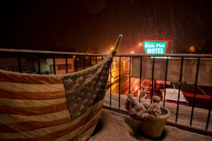 Auf einmal haben wir im Zelt nur mehr ganz wenige Plus-Grade und die paar Regentropfen von vorhin auf der Zelthaut sind mittlerweile gefroren. So verbringen wir ein paar Nächte in der Wildnis – man gewöhnt sich auch an Vieles. Zwischendurch und wenn vorhanden gönnen wir uns manchmal auch ein billiges Motel. So auch für die kälteste aller Nächte, welche wir in Ely verbringen. Wir sehen aus dem Fenster und beobachten den Schneesturm.