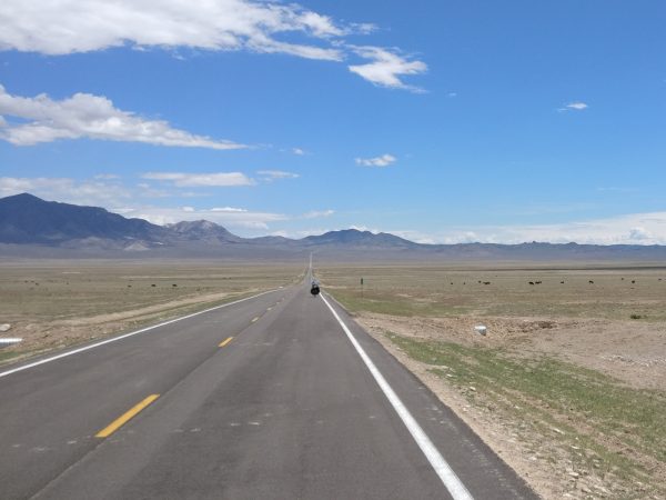 Seiten- oder Gegenwind hingegen kann etwas zermürbend sein und einem das Gefühl geben, dass man sich nicht wirklich vom Fleck bewegt. Da werden aus den flotten 30 km/h auf einmal 5 bis 10. Aber die meiste Zeit ist der Wind auf unserer Seite und Nevadas endlos weite Täler lassen sich in einem perfekten Tempo durchqueren: Langsam genug um die Schönheit zu genieβen, die Rinder zu verwirren und verschiedenste Nagetiere in ihre Erdlöcher fliehen zu sehen, jedoch rasch genug um nicht Stunden in dem gleichen Tal zu verbringen.