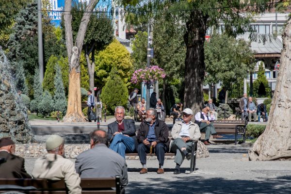 Als wir am 13. Oktober schließlich in Sivas ankommen, sitzen die Männer im Zentrum der Stadt gerade zum Freitagsgebet im Schatten der Moschee versammelt.