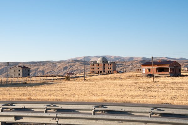 Die AKP unterstützt den Neubau hunderter Moscheen in der Türkei – diese werden in jedes noch so kleine Dorf gepflanzt. Die Moschee in Bildmitte wird in einer Siedlung aus 4-5 (ebenfalls noch im Bau befindlichen) Einfamilienhäusern gebaut. Wir fragen uns, wer diese teuren Bauten letztendlich finanziert, und vermuten, dass ölreiche arabische Staaten die AKP bei der Islamisierung der Türkei unterstützen.