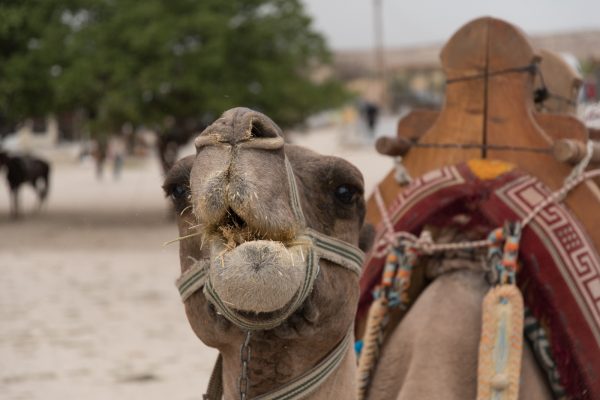 Den obligatorischen Touristen-Kamelen ist die geologische Attraktion hingegen ziemlich egal – Hauptsache es gibt was zu futtern.