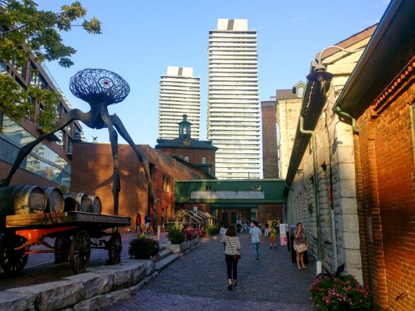Nächster großer Stopp unserer Tour ist Toronto. Hier hat sich wirklich einiges geändert: Viele zusätzliche Hochhäuser prägen das Stadtbild. Aus der neuen Perspektive des Radfahrers gibt es nun auch neue(?) Radwege – teilweise richtige Fahrrad-Highways. Wir lassen uns mitziehen vom Großstadttrubel und tauchen ein in Cafés, Bars und lustige Star Trek Burlesque Shows. Toronto ist cooler geworden – so scheint es zumindest. Möglicherweise wird dieser Eindruck durch das gemeinsame Erleben der Stadt geweckt. Entdeckt Kathi nun mit Hannes auch hippe Stadtteile, die sie vorher immer „übersehen“ hatte: So wie das historische Distillery District, das renoviert und zu einem Künstler- sowie Boutiqueviertel gemacht wurde. Wir schlendern durch die Gassen und staunen über Kunstprojekte.